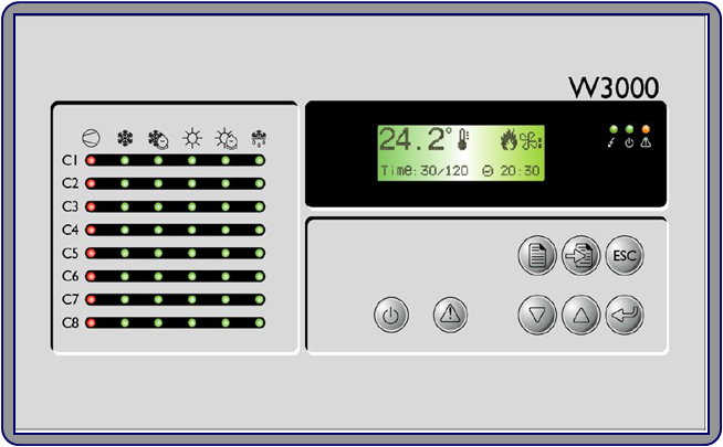 2. 機(jī)組控制與運(yùn)行管理:先進(jìn)的W3000 微電腦智能控制系統(tǒng),內(nèi)置克萊門特特殊設(shè)計(jì)的控制算法,更加突出機(jī)組的節(jié)能性和可靠性:FIFO 壓縮機(jī)運(yùn)行時間均衡功能,延長整機(jī)壽命;自動負(fù)荷調(diào)整輸出功能,節(jié)能節(jié)電;通過與壓縮機(jī)的減載系統(tǒng)相配合,實(shí)現(xiàn)25-100%無級調(diào)節(jié);運(yùn)行參數(shù)調(diào)整和設(shè)定,適應(yīng)不同環(huán)境應(yīng)用;溫度壓力保護(hù)采用模擬量測量,可以預(yù)測預(yù)防故障發(fā)生,增加可靠性。